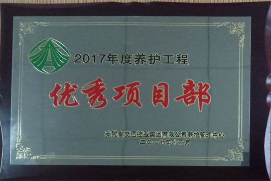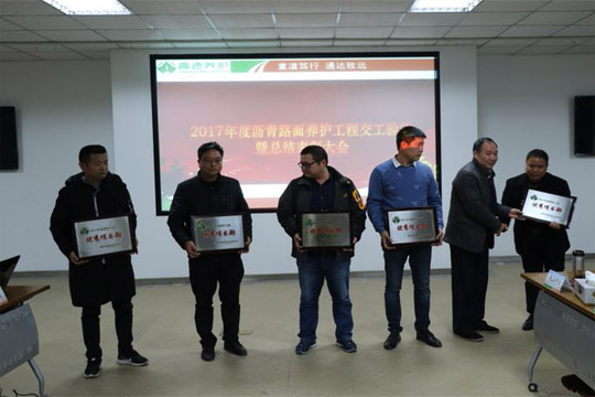 2017年12月14日,2017年度瀝青路面養(yǎng)護(hù)工程交工驗(yàn)收暨總結(jié)表彰大會在合肥召開,六安市交通公路實(shí)業(yè)有限公司2017-2019年度安徽省部分高速公路瀝青路面專項(xiàng)養(yǎng)護(hù)工程03標(biāo)項(xiàng)目經(jīng)理部榮獲2017年度養(yǎng)護(hù)工程”優(yōu)秀項(xiàng)目部“和”安全管理先進(jìn)單位“稱號。